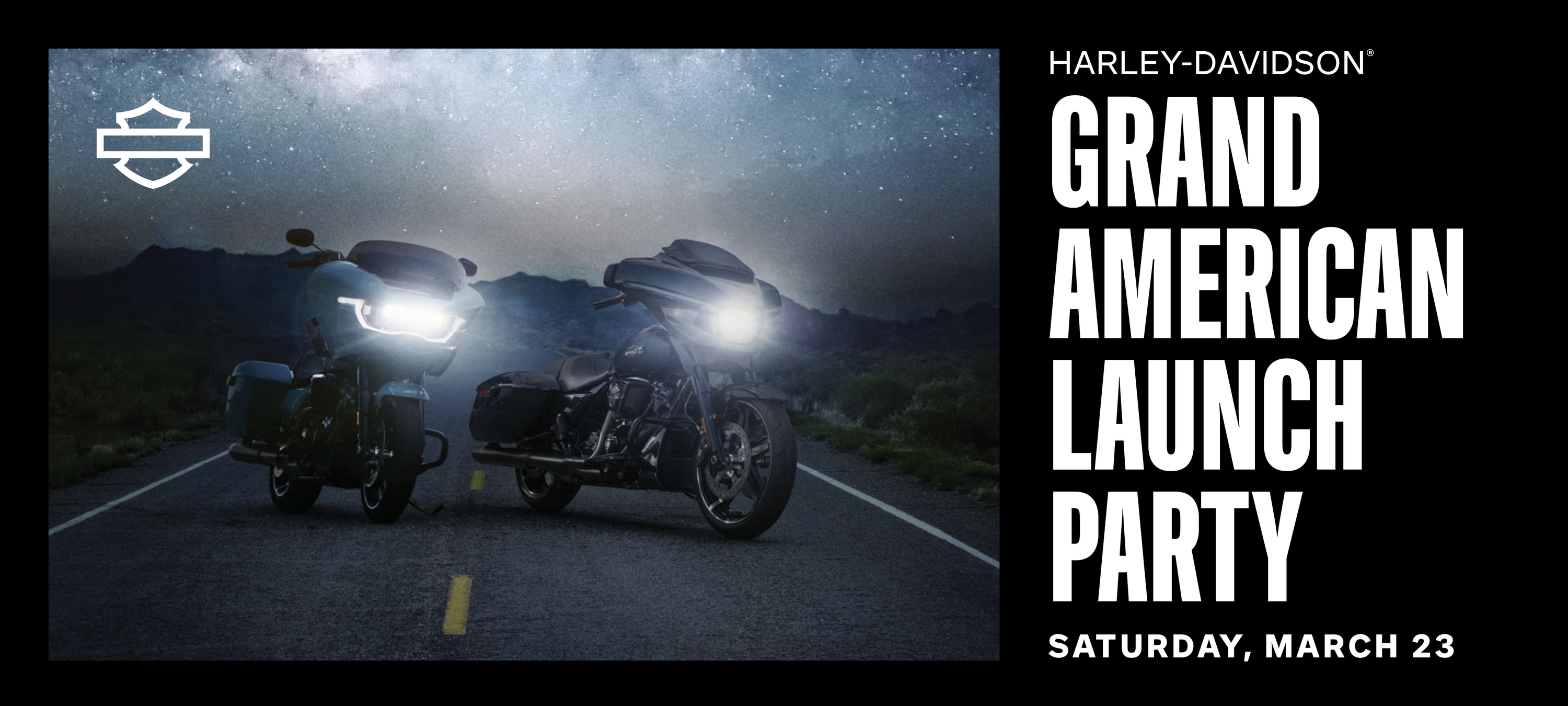 Join us to celebrate two re-imagined legends – the all-new 2024 Road Glide® and Street Glide® at our Grand American Launch Party on Saturday, March 23. Join fellow riders and enthusiasts to experience all that’s new and gear up for an unforgettable riding season.